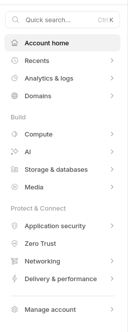 Step 3: Open the cloudflare home page ("Account Home" from the left hand menu)