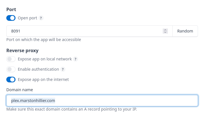 I have a Runtipi server hosted on my local network with an app (Plex) I want to expose on the internet.